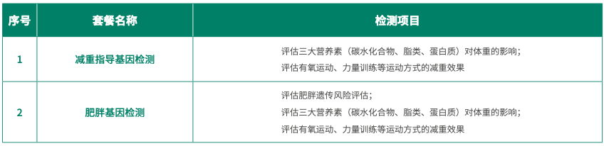 悅享譜TM纖體養(yǎng)護(hù)基因檢測(cè)通過檢測(cè)人體與肥胖發(fā)生相關(guān)的基因,評(píng)估肥胖發(fā)生的遺傳風(fēng)險(xiǎn),飲食中不同的營(yíng)養(yǎng)成分對(duì)體重的影響、不同的運(yùn)動(dòng)方式對(duì)減重效果的影響,并根據(jù)檢測(cè)結(jié)果提供個(gè)性化飲食建議、運(yùn)動(dòng)減重方式建議,從而達(dá)到有效預(yù)防肥胖、科學(xué)減重的目的。