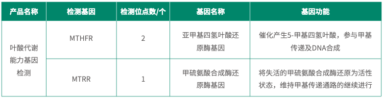 葉酸代謝能力基因檢測就是通過檢測葉酸代謝途徑中兩個關(guān)鍵的代謝酶基因—MTHFR基因和MTRR基因的多態(tài)性,從基因水平了解機體對葉酸的利用能力,實現(xiàn)葉酸的個性化補充,從而預(yù)防疾病的發(fā)生。
