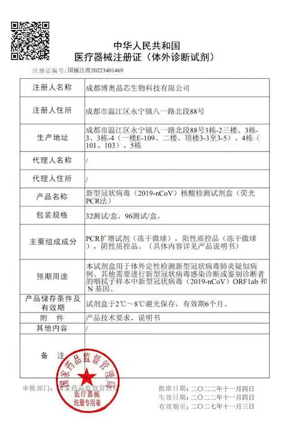 再添新翼 | 博奧晶典凍干型高靈敏度新型冠狀病毒(2019-nCoV)核酸檢測試劑盒 (熒光PCR法)獲批上市!
