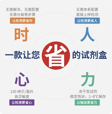 采用凍干微球專利技術,將擴增反應所需試劑提前預混凍干,破局冷鏈運輸,讓儲運更省力節(jié)能。