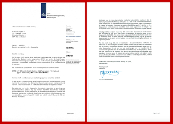 2022年11月4日,博奧晶典新冠病毒核酸檢測整體解決方案再添新成果,凍干型高靈敏度的新型冠狀病毒(2019-nCoV)核酸檢測試劑盒 (熒光PCR法)正式獲得醫(yī)療器械注冊證(國械注準:20223401469)。這是國家藥品監(jiān)督管理局審批通過的首個凍干型新冠病毒核酸檢測試劑盒,同時具備中國NMPA和歐洲CE“雙證”,為堅持“動態(tài)清零”,全面加強常態(tài)化疫情防控能力建設提供全新戰(zhàn)疫利器。