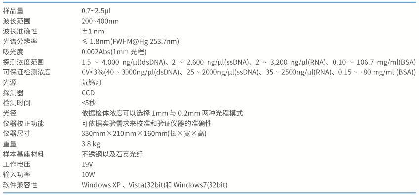 ☆ 在40-3000ng/μl(dsDNA)濃度范圍,測(cè)量精度CV>3%;