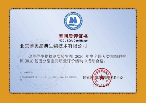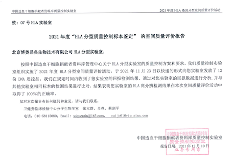 “HLA基因分型室間質(zhì)量”室間質(zhì)評(píng)證書