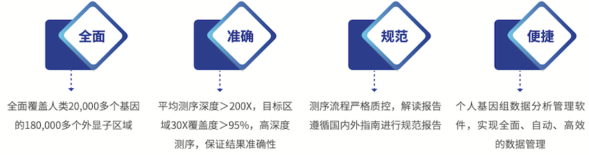 目前人類全部的基因約2萬多個,共計18萬多個外顯子?;蚴怯赏怙@子和內(nèi)含子組成,外顯子是直接參與蛋白質編碼的DNA區(qū)域,約占整個人類基因組的1-2%,約85%的人類遺傳基因變異集中在外顯子區(qū)域?;诟咄繙y序技術的個人全外顯子組基因檢測能夠在基因水平上對疾病進行檢測,從而輔助醫(yī)生進行臨床診斷,確定疾病類型和患病風險,幫助患者及家屬明確病因和指導生育。