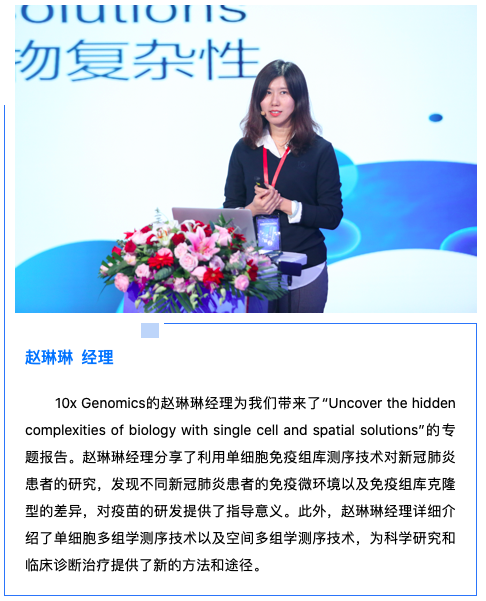 清華大學(xué)醫(yī)學(xué)院研究員、博士生導(dǎo)師,生物芯片北京國(guó)家工程研究中心常務(wù)副主任,博奧生物集團(tuán)有限公司高級(jí)副總裁,北京博奧晶典生物技術(shù)有限公司總裁邢婉麗女士為本次會(huì)議進(jìn)行了開(kāi)幕式致辭。邢婉麗總裁表示單細(xì)胞測(cè)序技術(shù)及空間轉(zhuǎn)錄組技術(shù)在生命科學(xué)和醫(yī)學(xué)研究領(lǐng)域的應(yīng)用日益受到關(guān)注,為高分辨率研究細(xì)胞分群和組織功能研究提供重要的支撐,對(duì)發(fā)現(xiàn)組學(xué)間關(guān)系、記錄動(dòng)態(tài)生物活動(dòng)具有非常重要的意義,為科學(xué)界和醫(yī)學(xué)界更加深入地去認(rèn)識(shí)生命的本質(zhì),解析胚胎發(fā)育過(guò)程、腫瘤發(fā)生發(fā)展、新冠肺炎免疫機(jī)制、發(fā)現(xiàn)新的生物標(biāo)志物和治療靶點(diǎn)等提供全新而絢爛的研究視角。邢婉麗總裁對(duì)所有報(bào)告嘉賓及參會(huì)嘉賓的到來(lái)表示熱烈歡迎及衷心感謝!