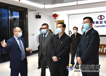 日前,福建省委常委、福州市委書記林寶金一行蒞臨博奧晶典旗下福建博奧醫(yī)學(xué)檢驗所考察調(diào)研核酸檢測能力建設(shè)情況,北京博奧晶典生物技術(shù)有限公司副總裁王國青向林寶金書記匯報了福建博奧醫(yī)學(xué)檢驗所在福州市新冠疫情防控中完成的工作以及為應(yīng)對疫情常態(tài)化防控博奧打造的核酸檢測實驗室整體解決方案。林寶金書記對福建博奧醫(yī)學(xué)檢驗所在疫情期間所做的工作表示肯定,希望福建博奧檢驗進一步提升檢測能力,科學(xué)高效地完成好檢測工作,做好今冬明春新冠肺炎疫情防控工作,保障人民生命安全和身體健康,推動經(jīng)濟社會平穩(wěn)發(fā)展。