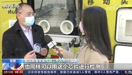 ? ? ? “這個(gè)芯片相當(dāng)于一個(gè)微型的實(shí)驗(yàn)室它集成了核酸的提取、核酸的擴(kuò)增檢測(cè),在芯片里面全自動(dòng)完成,45分鐘以后,我們就可以在系統(tǒng)里看到結(jié)果?!北本┎W晶典生物技術(shù)有限公司副總裁王國(guó)青表示。信息結(jié)果將同步推送到健康寶,除了人的樣本以外,環(huán)境樣本也可以用全集成芯片進(jìn)行檢測(cè)。