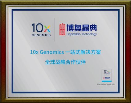2021年6月28日,北京博奧晶典生物技術(shù)有限公司(以下簡稱“博奧晶典”)與10x Genomics公司“一站式解決方案全球戰(zhàn)略合作伙伴”簽約授牌儀式在京舉行。10x Genomics公司中國區(qū)總經(jīng)理江滔,中國北方區(qū)銷售經(jīng)理付大超,仁科生物科技集團有限公司執(zhí)行總裁邱雁南,博奧晶典副總裁兼科研合作服務(wù)中心主任孫義民、副主任李彥澤、產(chǎn)品總監(jiān)孟晨、銷售總監(jiān)龐博等出席簽約授牌儀式。