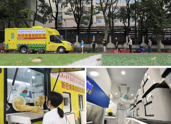 在武漢全員核酸檢測過程中,有這樣一抹亮色,馳騁在武漢抗疫前線,它就是博奧晶典新冠病毒核酸檢測移動實驗室。由清華大學(xué)、生物芯片北京國家工程研究中心和北京博奧晶典生物技術(shù)有限公司共同研發(fā)的新冠病毒核酸檢測移動實驗室是國內(nèi)首臺集采集和檢測為一體的移動式新冠病毒檢測實驗室,同時也是全國首款由輕型客車裝載的移動實驗室,被鐘南山院士命名為“輕騎兵”。