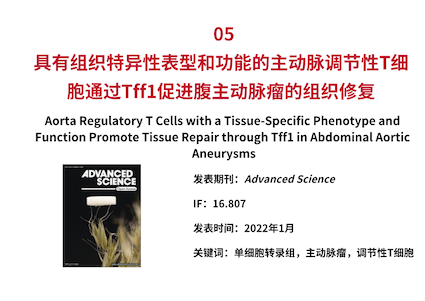 除了維持免疫耐受外,F(xiàn)oxp3+ 調(diào)節(jié)性 T 細(xì)胞 (Tregs) 在組織穩(wěn)態(tài)和重塑中發(fā)揮特殊作用。然而,動(dòng)脈瘤中的 Tregs 是否具有組織特異性的表型和功能尚不清楚。本研究中發(fā)現(xiàn)了一組特殊的可能抑制腹主動(dòng)脈瘤(AAA)進(jìn)展的 Tregs,并對(duì)其進(jìn)行了功能表征。主動(dòng)脈 Tregs 在 AAA 進(jìn)展中逐漸增加,主要來(lái)自外周循環(huán)。單細(xì)胞 TCR 測(cè)序和批量 RNA 測(cè)序顯示了它們獨(dú)特的表型和高表達(dá) Tff1。利用 Foxp3cre/creTff1flox/flox小鼠研究 AAA 中 Tff1 的作用,發(fā)現(xiàn)主動(dòng)脈 Tregs 分泌 Tff1 以調(diào)節(jié)平滑肌細(xì)胞 (SMC) 的存活。體外實(shí)驗(yàn)證實(shí) Tff1 通過(guò)細(xì)胞外信號(hào)調(diào)節(jié)激酶(ERK)1/2途徑抑制平滑肌細(xì)胞凋亡。這些發(fā)現(xiàn)揭示了主動(dòng)脈 Tregs 的組織特異性表型和功能,并可能為預(yù)防 AAA 提供一種有希望的新方法。