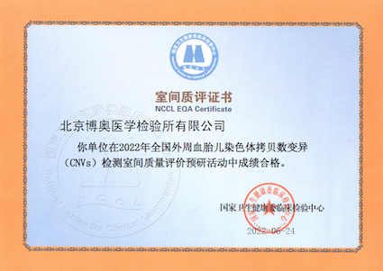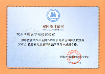 近日,國家衛(wèi)生健康委臨床檢驗(yàn)中心(NCCL)公布了2022年《全國外周血胎兒染色體拷貝數(shù)變異(CNVs)檢測室間質(zhì)量評價(jià)預(yù)研活動(dòng)結(jié)果報(bào)告》,博奧晶典旗下北京博奧醫(yī)學(xué)檢驗(yàn)所有限公司和東莞博奧醫(yī)學(xué)檢驗(yàn)實(shí)驗(yàn)室滿分通過該項(xiàng)目室間質(zhì)評。
