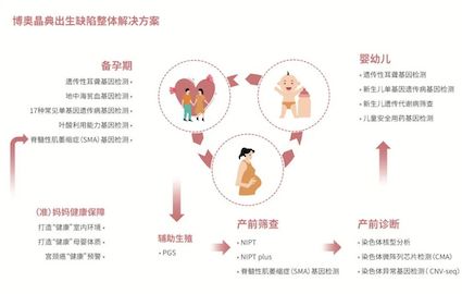 此外,博奧晶典結(jié)合國內(nèi)外出生缺陷預(yù)防發(fā)展及臨床需求,不斷更新婦幼健康檢測產(chǎn)品并提升醫(yī)學(xué)檢驗服務(wù)能力,構(gòu)建孕前、產(chǎn)前及新生兒三級防控體系,打造出生缺陷及罕見病精準(zhǔn)防控平臺。博奧晶典婦幼健康檢測項目包含染色體異常系列如無創(chuàng)產(chǎn)前基因檢測(NIPT)、染色體微缺失/微重復(fù)無創(chuàng)產(chǎn)前基因檢測(NIPT-plus)、染色體異?;驒z測(CNV-seq)、染色體微陣列芯片檢測(CMA)、胚胎植入前遺傳學(xué)篩查(PGS)、染色體核型分析等,以及單基因病系列如遺傳性耳聾基因檢測、地中海貧血基因檢測、遺傳代謝病檢測、單基因遺傳病攜帶者篩查、臨床全外顯子組基因檢測、個人全外顯子組基因檢測(WES)、增強(qiáng)全外顯子組基因檢測(WES+CNV-seq)等,致力于推動基因檢測技術(shù)在婦幼健康領(lǐng)域的廣泛開展,助力我國出生缺陷和罕見病精準(zhǔn)防控。