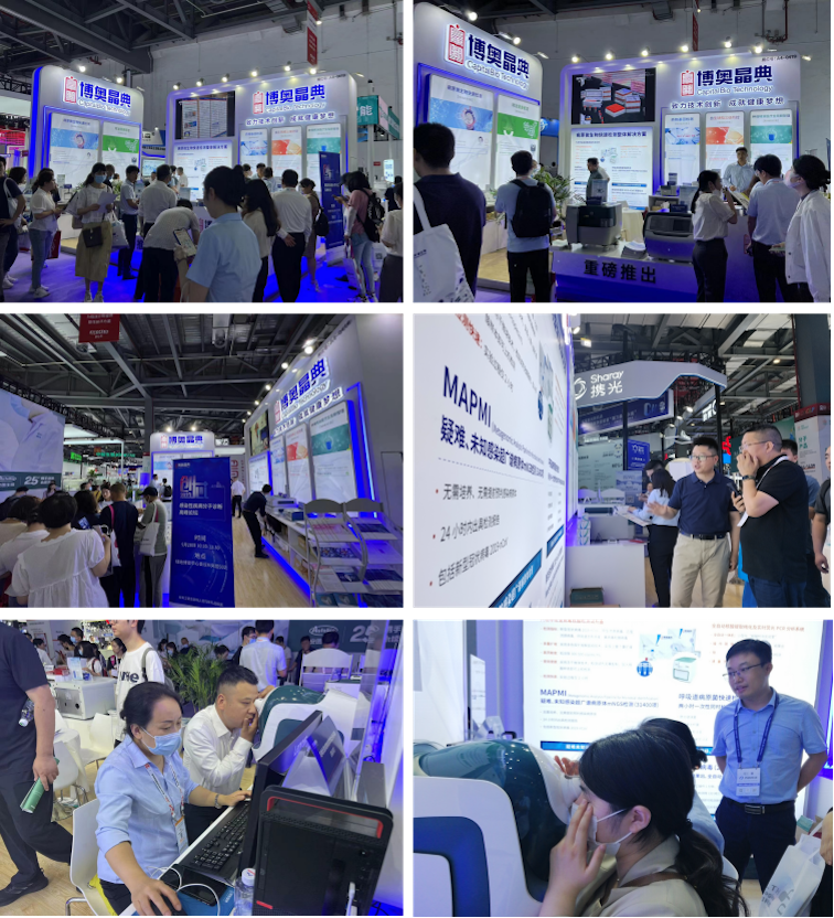 在這場集專業(yè)、規(guī)模、影響力于一身的體外診斷專業(yè)盛會上,為臨床診斷提供整體解決方案的博奧晶典萬眾矚目,贏得了業(yè)界廣泛關(guān)注。在晶典展臺上,獲得2022年度“創(chuàng)之星”杯中國體外診斷年度優(yōu)秀創(chuàng)新產(chǎn)品金獎的二十三項遺傳性耳聾基因檢測芯片試劑盒、六項呼吸道病毒核酸檢測系統(tǒng)、呼吸道病原菌快速檢測芯片系統(tǒng)、MAPMI?疑難未知感染超光譜病原體mNGS檢測(31400項)、NIPT/NIPT-plus、CNV-seq等多項重磅明星產(chǎn)品收到了極高的關(guān)注度,先進的設(shè)計理念、產(chǎn)品優(yōu)異的性能獲得了一眾點贊,現(xiàn)場咨詢者絡(luò)繹不絕,氣氛火熱,眾多行業(yè)大咖、專家學者紛紛來到晶典展臺進行學術(shù)交流與商務(wù)對接,盡顯博奧晶典在分子診斷領(lǐng)域龍頭企業(yè)的實力與魅力。