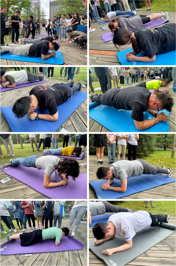 激烈的比賽現(xiàn)場,選手們擺好標(biāo)準(zhǔn)姿勢,蓄勢待發(fā)。隨著時間的推移,大家不斷突破身體極限,每多一秒都是一份堅持、一份超越,激發(fā)了大家敢為人先、不甘落后的斗志。場邊圍觀的員工也被現(xiàn)場的氣氛所感染,大聲吶喊助威,躍躍欲試。