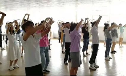 八段錦作為中國傳統(tǒng)的養(yǎng)生功法之一,采用動靜結(jié)合、身心互動、健患均益的健身方法。講究“調(diào)心”、“調(diào)息”、“調(diào)身”三者一致,有機結(jié)合,相互穿插。同學(xué)們在專業(yè)老師的帶領(lǐng)下體驗中國特色養(yǎng)生功法。